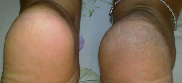 -Piel seca y gruesa (callos) alrededor de los talones.