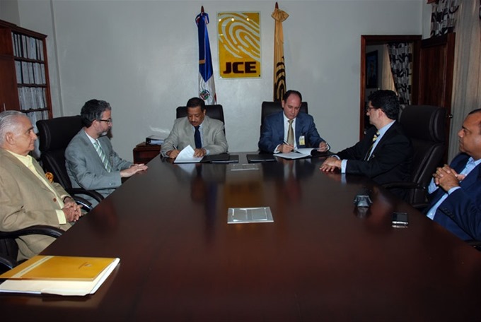 El acto de firma fue realizado en el despacho del presidente de la JCE, con la presencia del secretario general, Ramón Hilario Espiñeira; el presidente de la Comisión de Licitaciones, Luis Ramón Cordero, y el secretario de dicha comisión, Leonardo García. Como notario público actuó Bienvenido Ruiz Lantigua.