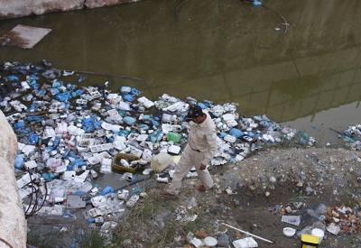 El agua está contaminada, pero los niños en un descuido de los padres, van al lugar.