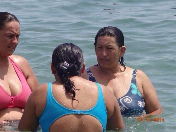 En la imagen, la mujer se está bañando en el mar y aparece acompañada por dos mujeres más; la foto tiene impresa la fecha “08 24 2014”.[adsensepost2]