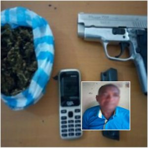 [Higüey] Agentes adscritos a la DICRIM apresaron a Francisco Michael (Marichal) por portar arma de fuego, y hallando a su lado una porción grande de probable marihuana, en el sector 21 de Enero. [ad id=»11330″]